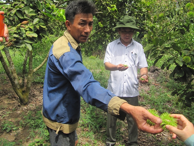 A farmer introduces visitors to his fruit farm in Núi Thành district in Quảng Nam Province. Fruit gardening is a sustainable solution in reducing human activities in natural forests. — VNS Photo Công Thành