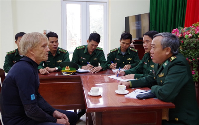 Bình Định Border Guards complete procedures for German national Michael Haas after he was rescued following a water-skiing accident. — Photo thanhnien.vn