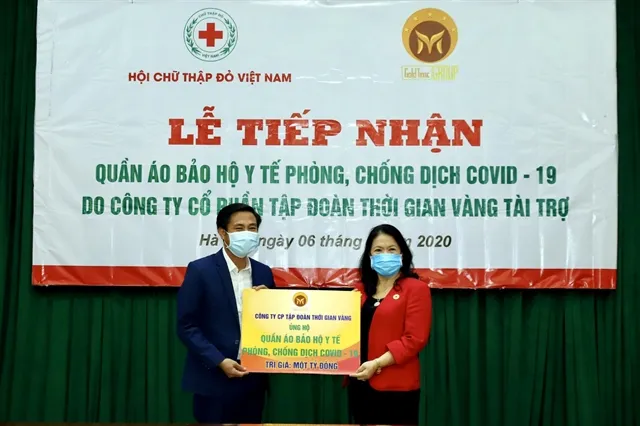 HÀ NỘI —The Golden Time Group donated 5,540 medical suits worth VNĐ1 billion (US$43,000) to the Việt Nam Red Cross Society (VNRC) at a ceremony today in Hà Nội.