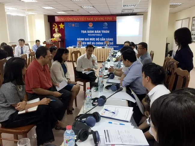 Delegates discuss open data and e-governance readiness at a roundtable held by the World Bank and VCCI in HCM City on January 23. — VNS