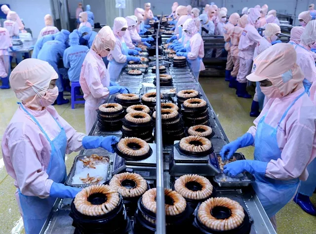 Processing shrimp for export at the factory of Minh Phú Hậu Giang Seafood Joint Stock Company in Hau Giang Province. VNA/VNS Photo Vũ Sinh