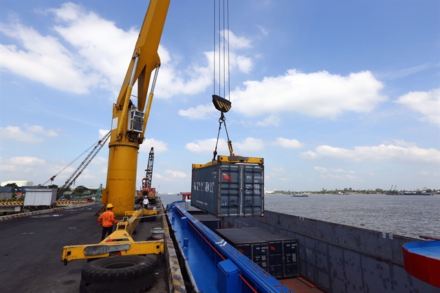 Cargo containers are loaded from a ship at Tân Cảng- Thốt Nốt Port in the southern city of Cần Thơ. VNA/VNS Photo Danh Lam