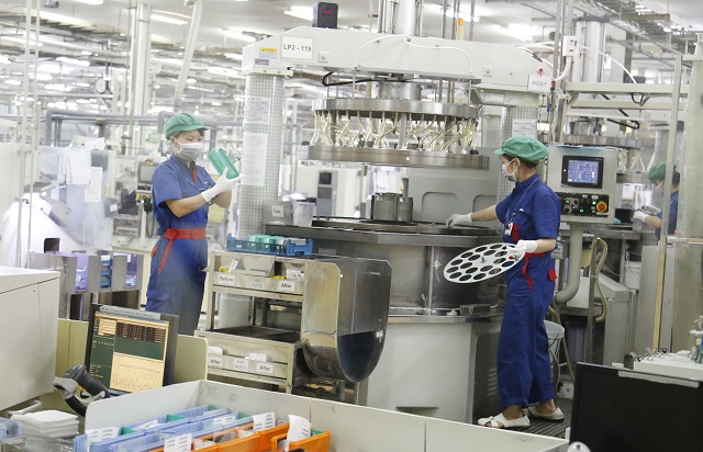 Production at the Hoya Glass Disk Vietnam Company in Thăng Long Industrial Park, Hà Nội. The capital city attracted $7 billion in FDI in the first 11 months this year. Photo kinhtedothi.vn