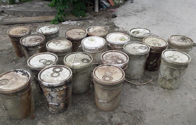 Last month, black-coloured waste illegally dumped on a road in Vĩnh Bảo District was discovered after a man was burnt when touching the waste. The case is still under investigation. — VNS