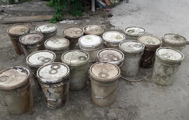 The barrels, which contained a light blue liquid, were recovered and stored by Đa Độ Irrigation Exploitation One Member Company Ltd.