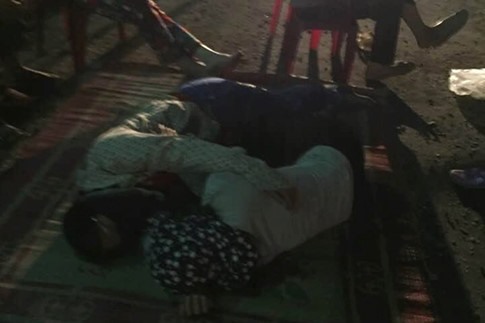 People lie on the road to prevent construction. —Photo thanhnhien.vn