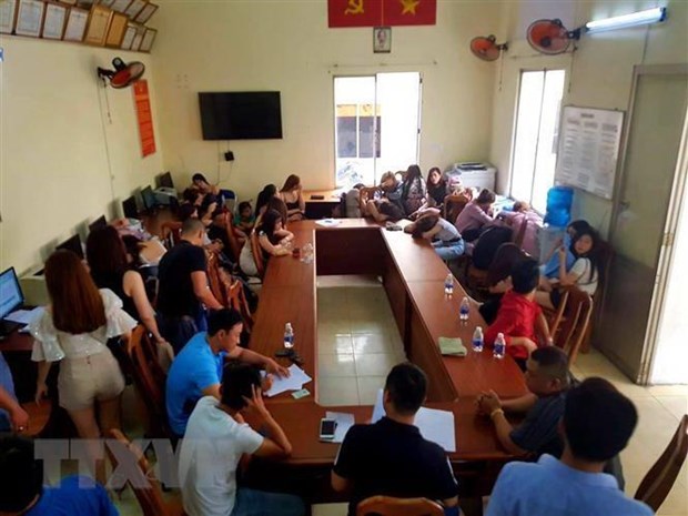 Drug users found at the 030-X8 bar on Nam Quốc Cang Street in HCM City at a local police station on July 24. — VNA/VNS Photo