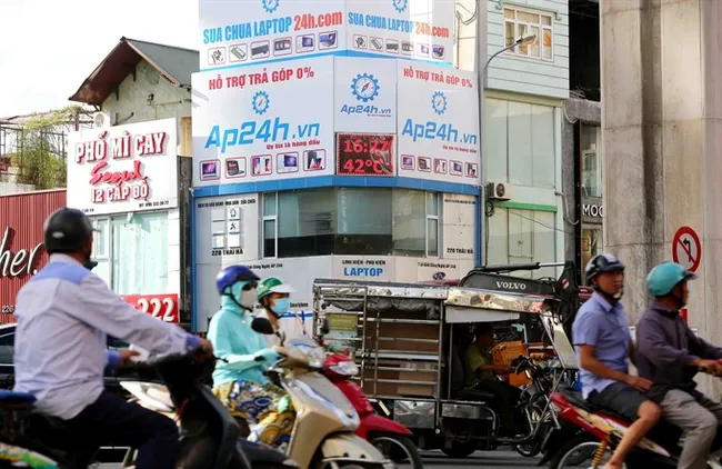 “It is getting hotter at noon. We spray water to try and cool the place down but it evaporates in minutes,” said Nguyễn Thị Ngà, the owner of an eatery on Lương Văn Can Street.