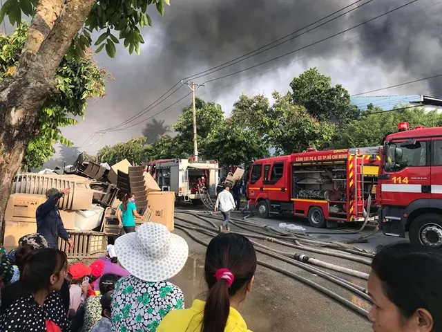 A fire occurred yesterday at Quảng Nhật Co Ltd in the Nhị Xuân Industrial Zone in Hóc Môn District, HCM City. No casualties were reported, however, the fire destroyed about 6,400sq.m of workshops and a number of properties. As many as 40 fire engines and 270 firemen were deployed to the scene. It took them more than three hours to extinguish the blaze. Authorities are investigating the cause of the fire. — VNA/VNS Photo