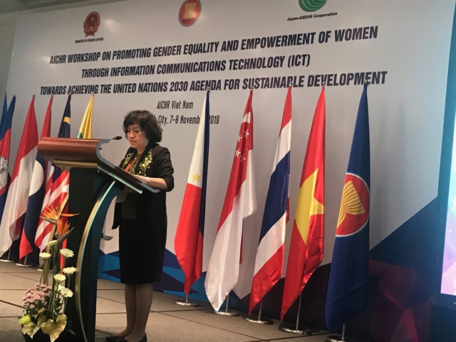 Gender equality is a necessary foundation for a peaceful, prosperous and sustainable world, Dr Nguyễn Thái Yên Hương, Việt Nam representative of AICHR, tells a two-day workshop held in HCM City. VNS Photo Gia Lộc