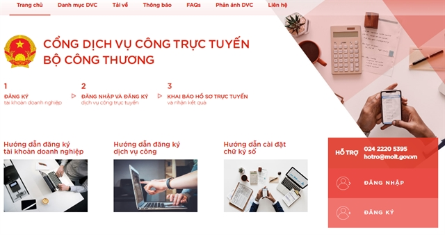 MoIT public services portal in Vietnamese. Companies will be able to apply for import licences online from November 1 this year. - VNS Photo