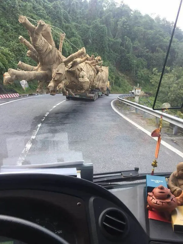 The origin of these giant trees has been a hot topic in the local media and social network as many suspect the trees to have been uprooted from a forest area, which means a violation of forestry laws and adds to the negative surge of forest logging. — Đức