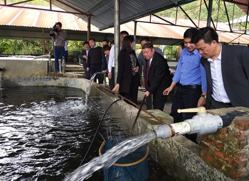 Lưu Văn Quang, a farmer in Dền Sáng Commune, Bát Xát District, said that thanks to the clean water from the mountain, local farmers set up fish raising ponds and produced high quality products.