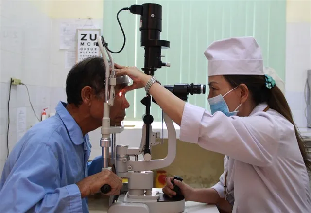 An elder gets his eyesight examined at a clinic in Cư Kuin, Đắk Lắk Province. — VNA/VNS Photo Phạm Cường |