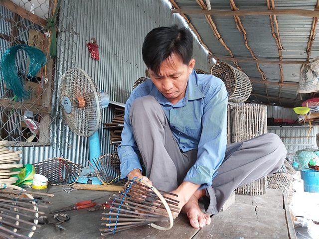 Nguyễn Quốc Việt in An Giang Province’s An Phú District makes crab-catching traps to sell to fishermen in the Mekong Delta and Cambodia during the flooding season. – VNA/VNS Photo Hồng Nhung