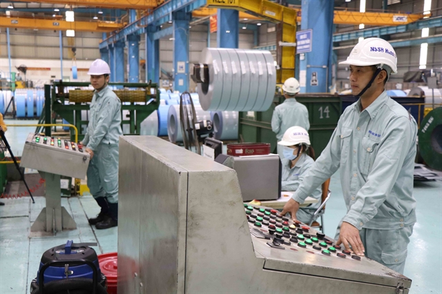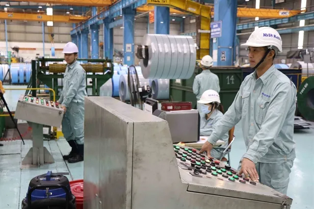 Workers at the Hà Nội Steel Services Co Ltd in Nam Sơn Commune, Bắc Ninh City, the northern province of Bắc Ninh. Minimum regional wage remains a great concern for many enterprises. — VNA/VNS Photo Thanh Thương