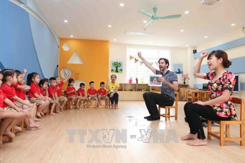 Native English-speaking teachers help children in kindergarten learn English more effectively. — VNA/VNS Photo