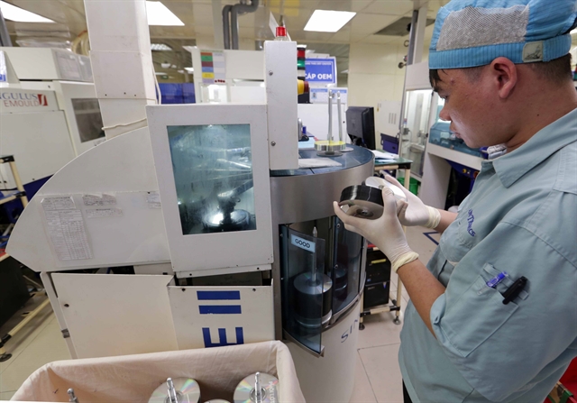 A worker checks CDs at Manutronic Vietnam Joint Stock Company. Supply chains are shifting to Southeast Asia due to the region’s growing economies and consumer markets, especially with trade tensions and rising production costs affecting other markets, according to an HSBC report.