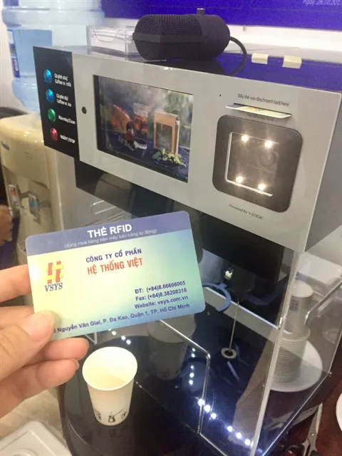 A coffee vending machine. The first AOIT and Smart Cities Competition for start-ups opened in HCM City on May 7. — VNS Photo Ngọc Diệp