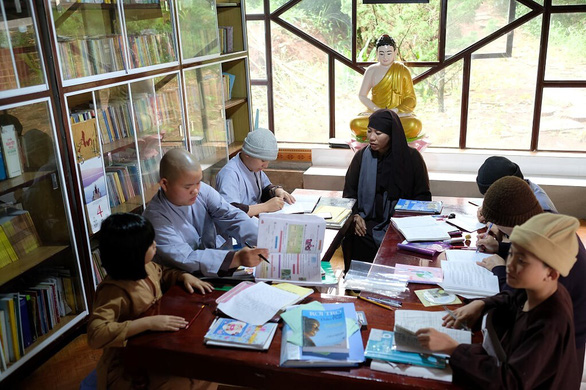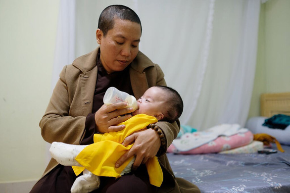 Nun Thích Minh Tài is also raising 12 other kids at the pagoda. — Photo tuoitre.vn