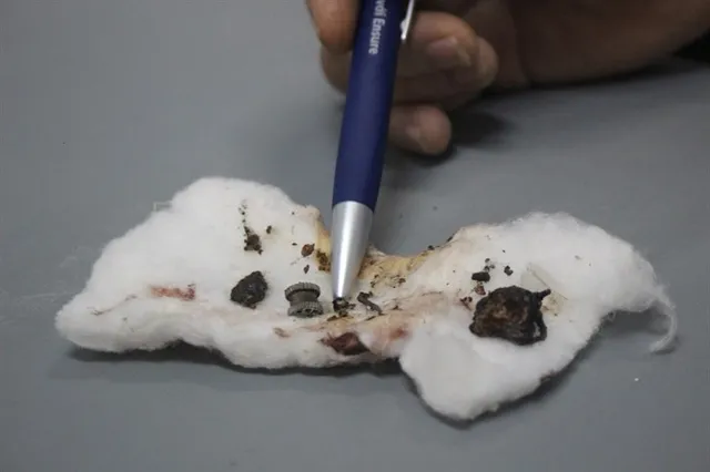Metal pieces removed from a patient in Quảng Nam Province. — VNS Photo Lan Anh