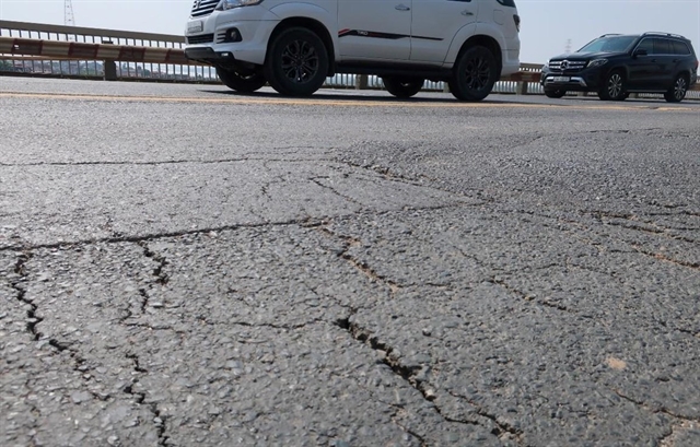 The uneven road surface on Thăng Long Bridge. VNA/VNS Photo Việt Hùng