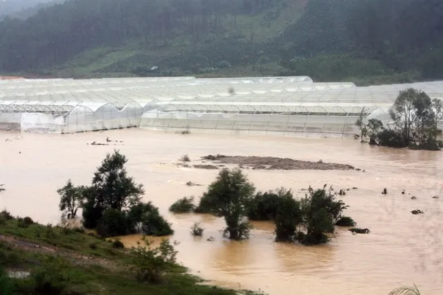 Greenhouses in Đạ Chais Commune of the Central Highlands province of Lâm Đồng were flooded when Typhoon Damrey made landfall on Saturday. — VNA/VNS Photo Chu Quốc Hùng – Đặng Anh Tuấn |