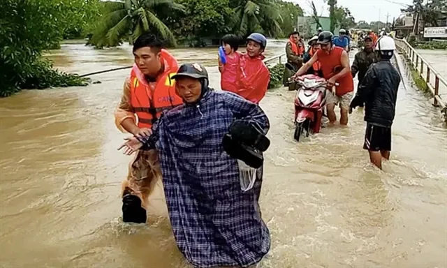 Residents evacuated from a flooded area on Phú Quốc Island last Friday. Photo e.vnexpress.net