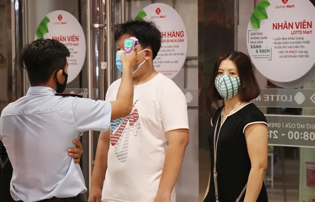 Customers are asked to wear masks and would have their temperatures checked before entering supermarkets at Lotte Mart, Nha Trang City. — VNA/VNS Photo Tiến Minh