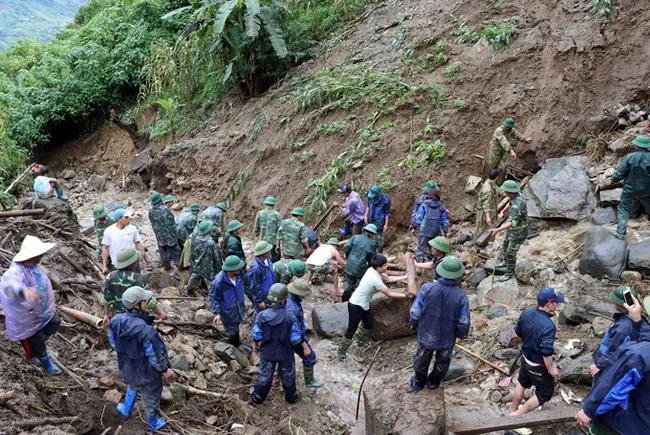 Besides efforts to search for the six missing people from Vàng Ma Chải Commune, the district’s authority is mobilising all forces including militiamen, police, border soldiers, and defence force and necessary facilities to soon clear the damaged traffic route.
