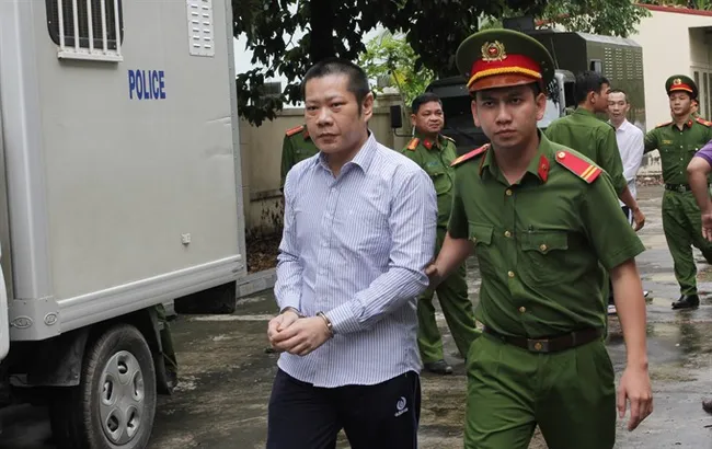 Chong Ngai Fong (centre), 48, of Malaysian nationality, and his six accomplices yesterday were sentenced to a total of 48 years of imprisonment, after a four-day trial. The Bến Tre Province People’s Court said that he and his accomplices used electronic equipment to appropriate property. — VNA/VNS Photo Huỳnh Phúc Hậu