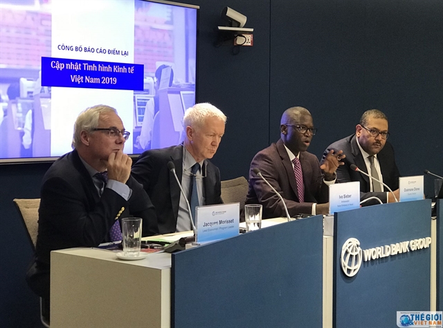 Participants at the launch of Taking Stock, the World Bank (WB)’s economic report on Việt Nam released on Tuesday. Many firms operating in the domestic market face severe obstacles preventing their expansion, with the most pertinent being access to credit. Photo baoquocte.vn