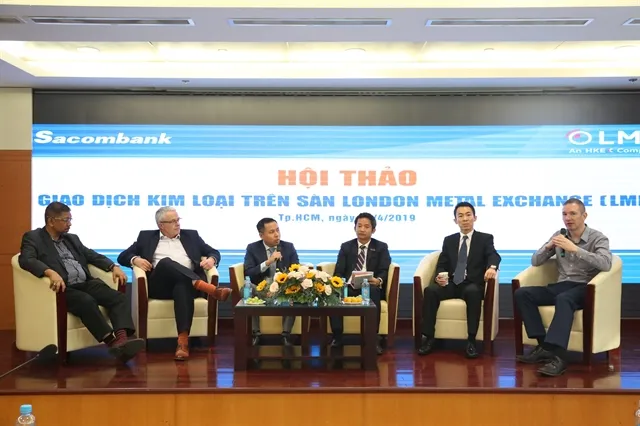 Experts answer questions from business executives at a seminar held in HCM City recently on trading on the London Metal Exchange. — Photo Courtesy of Sacombank
