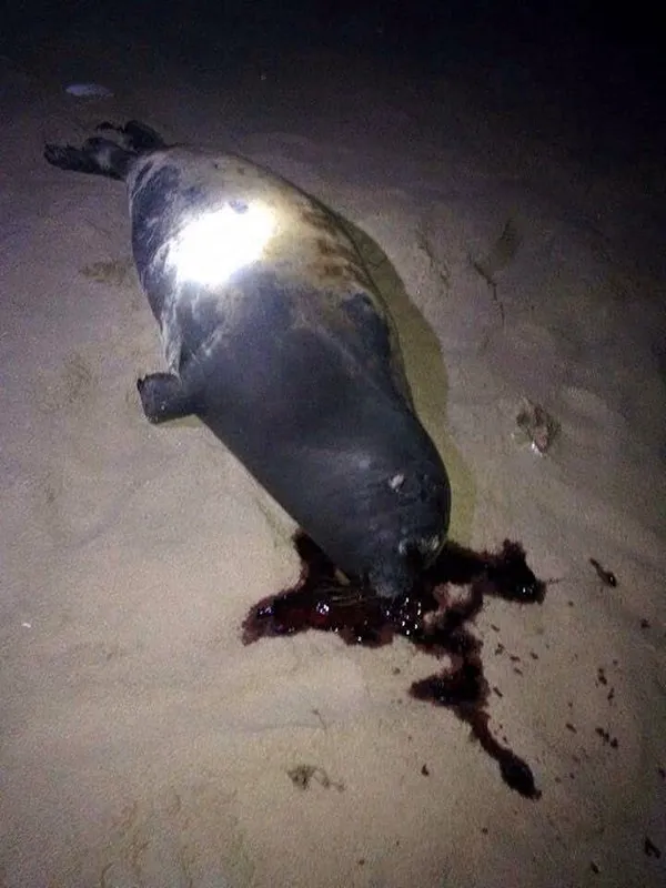 Locals said some fishermen may have killed the seal because they believed the animal had damaged their fishing nets and eaten their fish.