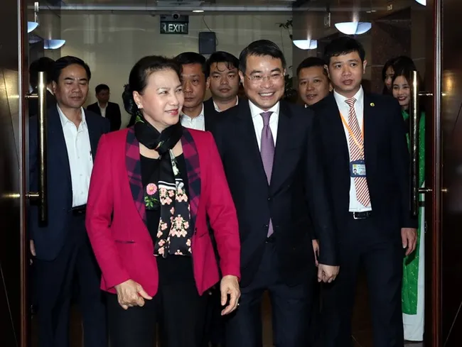 On behalf of Party and State leaders, NA Chairwoman Nguyễn Thị Kim Ngân expressed her best wishes to all Vietcombank leaders and workers for the year ahead.