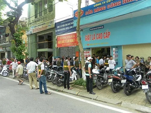 Police show up to overlook a debt collection operation in northern Hải Phòng City. — Photo nld.com.vn
