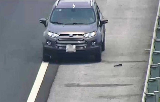 An automobile being reversed on the Hà Nội-Hải Phòng Highway. The photo was taken by camera and sent to police. — Photo Courtesy of the Vietnam Infrastructure Development and Finance Investment Joint Stock Company