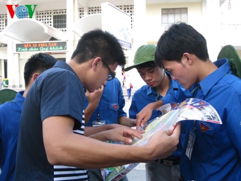 Student volunteers give guidance to a candidate in the national university entrance exam. — Photo vov.vn