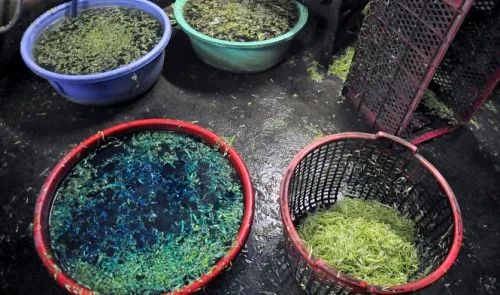 Officers also found 15kg of shredded water spinach, a machine to shred the vegetable and a box containing around 1kg of a dubious, unidentified green powder.