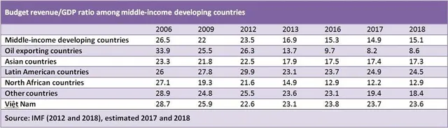 The current proportion of VAT, CIT and import-export tax in Việt Nam’s total budget revenue is higher than in other middle-income developing Asian countries, so the expansion of this tax source is unlikely.