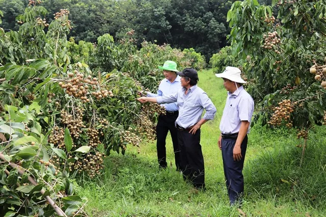 Tây Ninh Province’s officials visiting a longan farm of Võ Văn Tóan, a farmer in Truông Mít Commune of Tây Ninh Province’s Dương Minh Châu District. After five years, the 17.4ha-farm brings yield of 30-35 tonnes per hectare and his family earns VNĐ150 million (US$6,500) per year. — VNA/VNS Photo Lê Đức Hoảnh Tây |