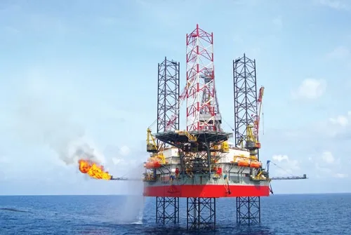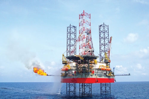 A Vietnam National Oil and Gas Group (PVN) oil rig. Oil prices pulled petroleum stocks down on Monday, bringing the benchmark VN-Index to 946.47 points.