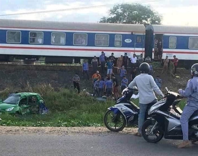 QUẢNG NGÃI — Two people were killed, including a one-month-old baby, and three others were seriously injured after a taxi in which they were riding collided with a train at a railway crossing in central Quảng Ngãi Province at 5pm on Tuesday, the Việt Nam Railway Corporation has reported.