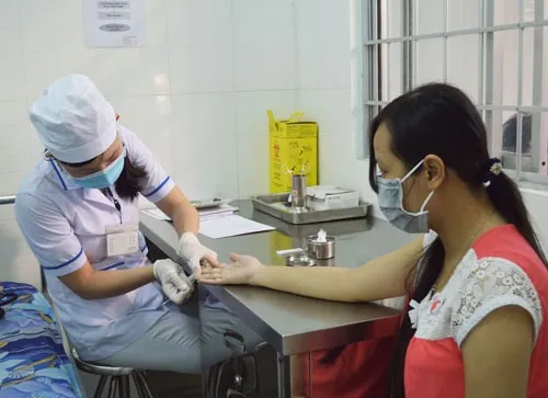 A health staff member takes blood for testing at An Hòa ward health station in Cần Thơ City’s Ninh Kiều District