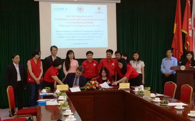 The Japan government funded project was signed between Việt Nam Red Cross (VNRC) Prsident Nguyễn Thị Xuân Thu and Jesper Moller, OIC UNICEF Việt Nam, at a ceremony on Tuesday in Hà Nội.