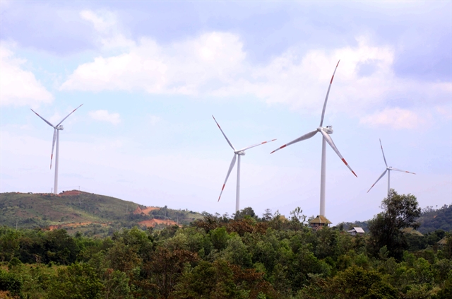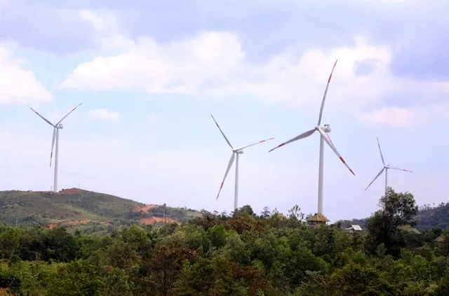 Wind turbines at a wind power project in the central province of Quảng Trị’s mountainous district of Hướng Hóa. As of October 2019, Quảng Trị is home to 68 wind power projects with total capacity of more than 3,600 MW. — VNA/VNS Photo Nguyên Lý