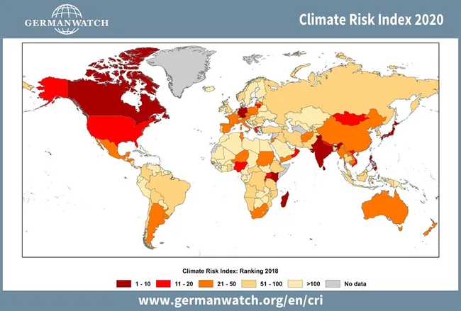 Climate risk map. — Photo courtesy of GermanWatch
