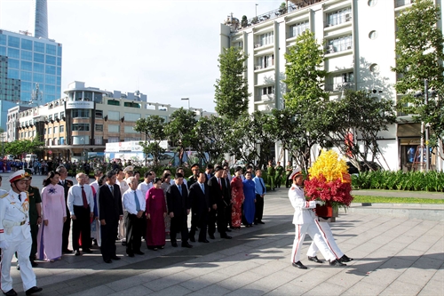 | The delegation from the HCM City Committee of the Party, People’s Council, People’s Committee and the Fatherland Front Committee laid flowers at the statue of the late President Hồ Chí Minh. – VNA/VNS Photo Thanh Vũ |
