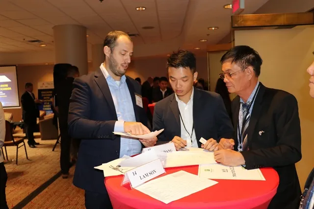 Canadian and Vietnamese firms meet at the workshop on seeking for business cooperation opportunities held on October 2 in Montreal, Canada. VNA/VNS Photo Quang Thịnh