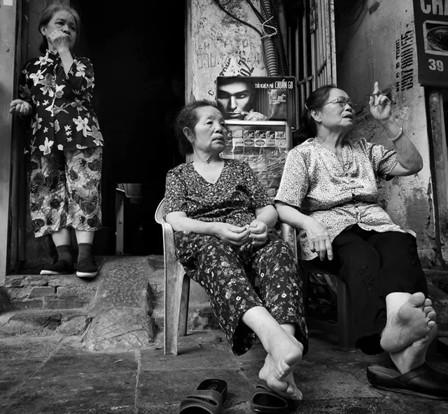 Two elderly women sit together on a pavement in Hà Nội.—VNS Photo Việt Thanh